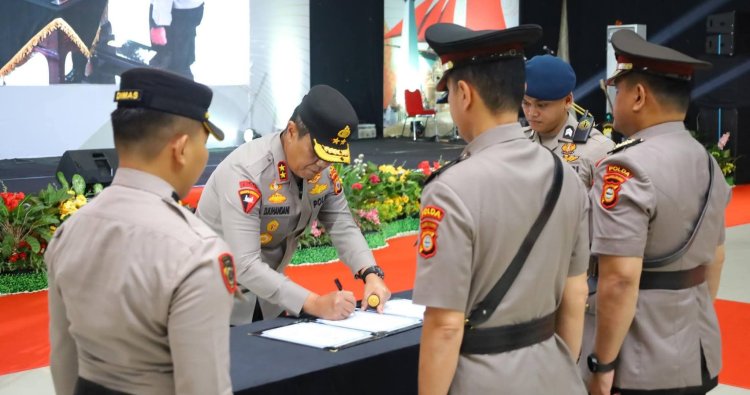SULSEL- Kapolda Sulawesi Selatan Irjen Pol. Djuhandhani Rahardjo Puro, S.H., M.H., memimpin Upacara Serah Terima Jabatan (Sertijab) Pejabat Utama dan Kapolres Jajaran serta Pelantikan Jabatan Direktur Reserse Pelindungan Perempuan dan Anak (PPA) dan Pemberantasan Perdagangan Orang (PPO) Polda Sulsel. Kegiatan berlangsung di Aula Mappaodang Mapolda Sulsel, Selasa (20/01/2026).